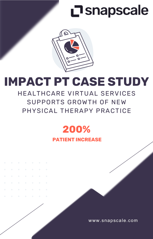 Read our Case Study, "Impact PT Case Study - Healthcare Virtual Services Supports Growth of New Physical Therapy Practice." Whether you're a hospital executive, solo practitioner, or manage several clinics, this case study will provide you with the knowledge and tools you need to staff up your team effectively, remotely and inexpensively. Get your questions answered!